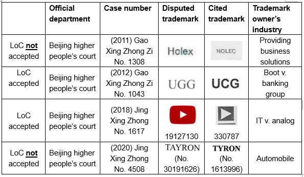 In the 2021 TAYRON/TYRON-case, although the trademark applicant has submitted a co-existence agreement, both the CNIPA and the court decided not to accept the LoC.