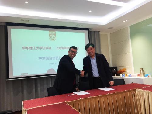 The signature ceremony was held on November 22, 2018. Nicola Aporti of HFG and professor Zhang - Dean of the Law College at East China University of Science and Technology signed the agreement for mutual cooperation between HFG and ECUST.