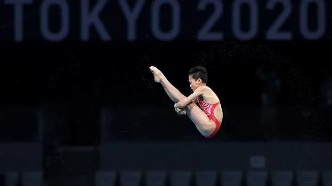 Quan Hongchan of China competes during the women’s 10m platform final of diving at the Tokyo 2020 Olympic Games in Tokyo, Japan, Aug. 5, 2021.