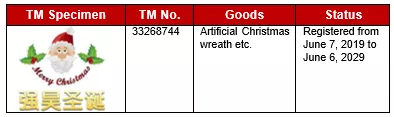 From the Oriental side ofthe world, the rule is comparatively stricter. It is not probably to own the trademark right for “Merry Christmas” per se on any goods/services. According to Chinese Trademark Examination standard, the common greeting words, for example “新年快乐 (Happy New Year)”, are not allowed to be registered as trademark due to the lack of distinctiveness characteristics. The search into Chinese trademark database doesn’t disclose any trademark for “Merry Christmas /圣诞快乐” registered.