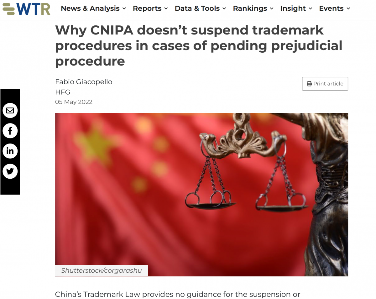 Fabio Giacopello的文章回应了公司收到的关于国家知识产权局商标程序缺乏协调性的若干意见。文章深入分析了中国国家知识产权局暂停商标程序的历史背景和现行法律框架。