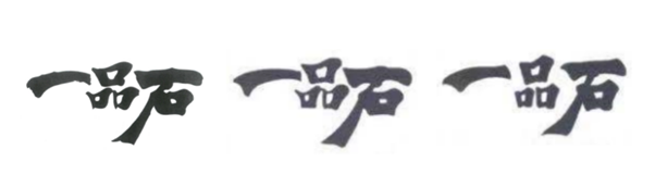 From left to right: Yipinshi artwork by Fuku, Yipinshi trademark No.1 and No. 2 applied by Zheng
