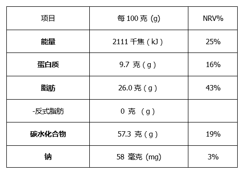营养素参考值百分比(NRV%)指每100克、每100毫升或每份食品可食部中某营养素含量占营养素参考值(NRV)的百分比。当NRV%为100%时,表示可满足4岁以上个体一天的营养素需要量。
