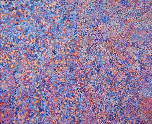 也就是说,由于你可以想象点画很普遍。并不是说每个使用圆点的艺术家都在复制原住民艺术品。试想一下乔治·修拉(George Seurat)和保罗·西纳克(Paul Signac),他们在1886年发展了点画派,或开创圆点派的日本艺术家草间弥生(Yayoi Kusama)。